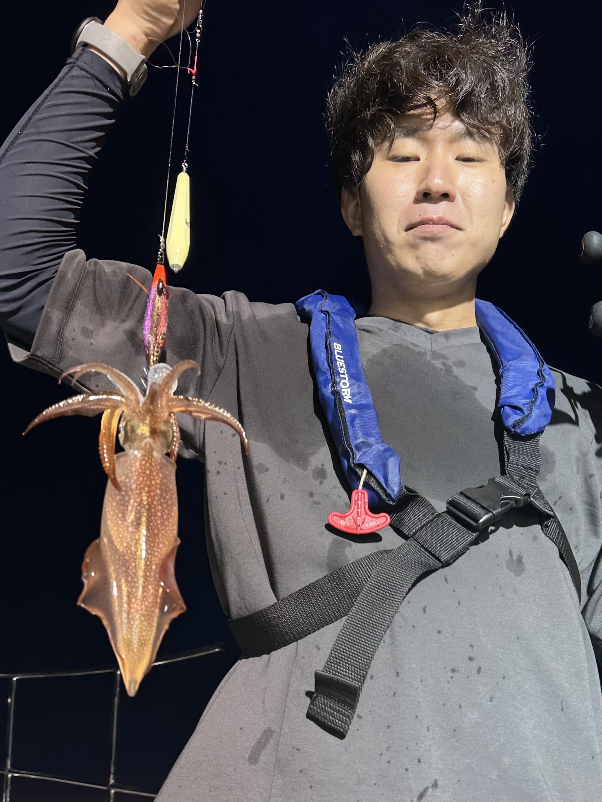 スルメイカ トップ35杯 シロイカ マアジ スルメ&マアジ狙いで出船。明るい時間からスルメが釣れ始めます。点灯後もいつもより速いペースで釣れ続きます。シロイカはいつものペースでたまに顔が見れる程度。スルメはいい感じでしたが、サバの邪魔が入り始めて少しずつペースダウン。アジも釣れますがサバが手強く今日は簡単ではなかったです。前半の貯金でみなさんお土産確保でした。 |