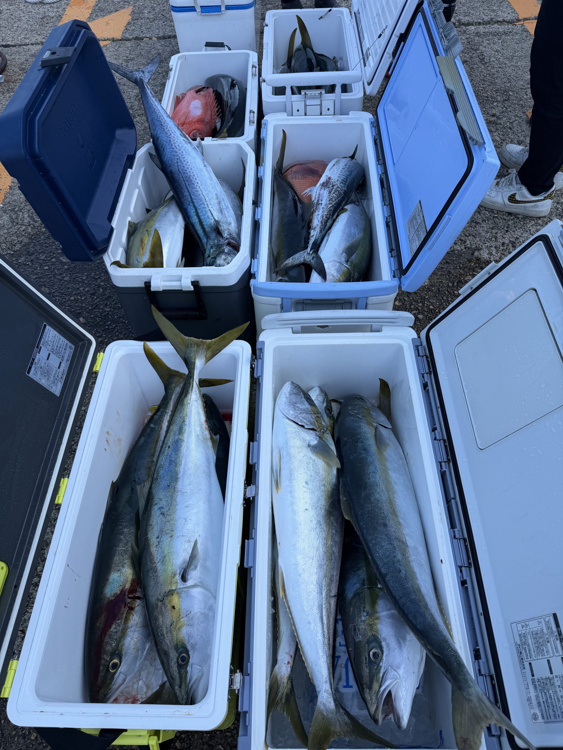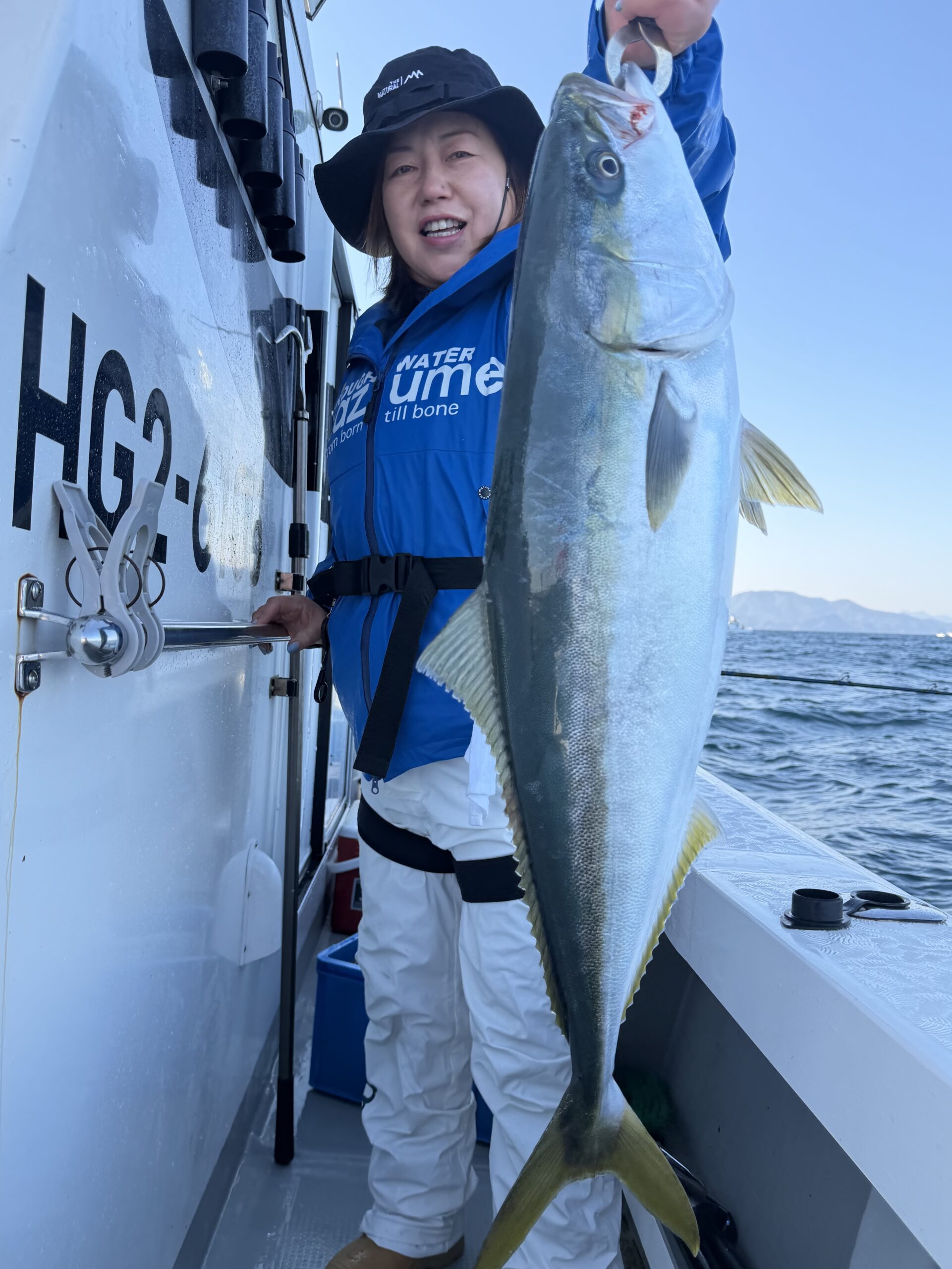 西方面へ快走。絶好調ポイントで大船団でした。ファーストヒットは大きなサワラ、セカンドヒットは90cmのヒラマサ、その後はブリとメジロがポツリポツリ。そして今日も10時頃から連発ヒットが始まりました。必要分確保でブリメジロはリリースしながら遊んでいると、96cmのヒラマサ、サワラの連発ヒット。始めと終わりよしで切り良く終了しました。今日も海の恵みとたくさんの僚船に感謝。