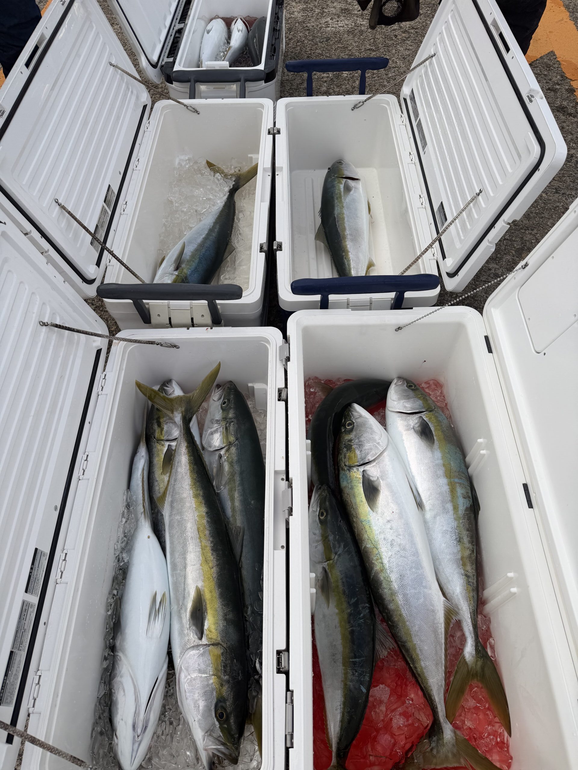 メジロ、ハマチ 13匹 ヒラメ 1匹 三日間休船。今日は高気圧に覆われているので穏やかだと思いきや南西の風でドッタンバッタンの海上でした。イワシ感度はありました。しかし群れが小さく移動も早く難しかったです。諦めずに頑張っていただきましたが、釣果伸びず。4+4+3+1+1+1でかろうじてお土産確保でした。 |