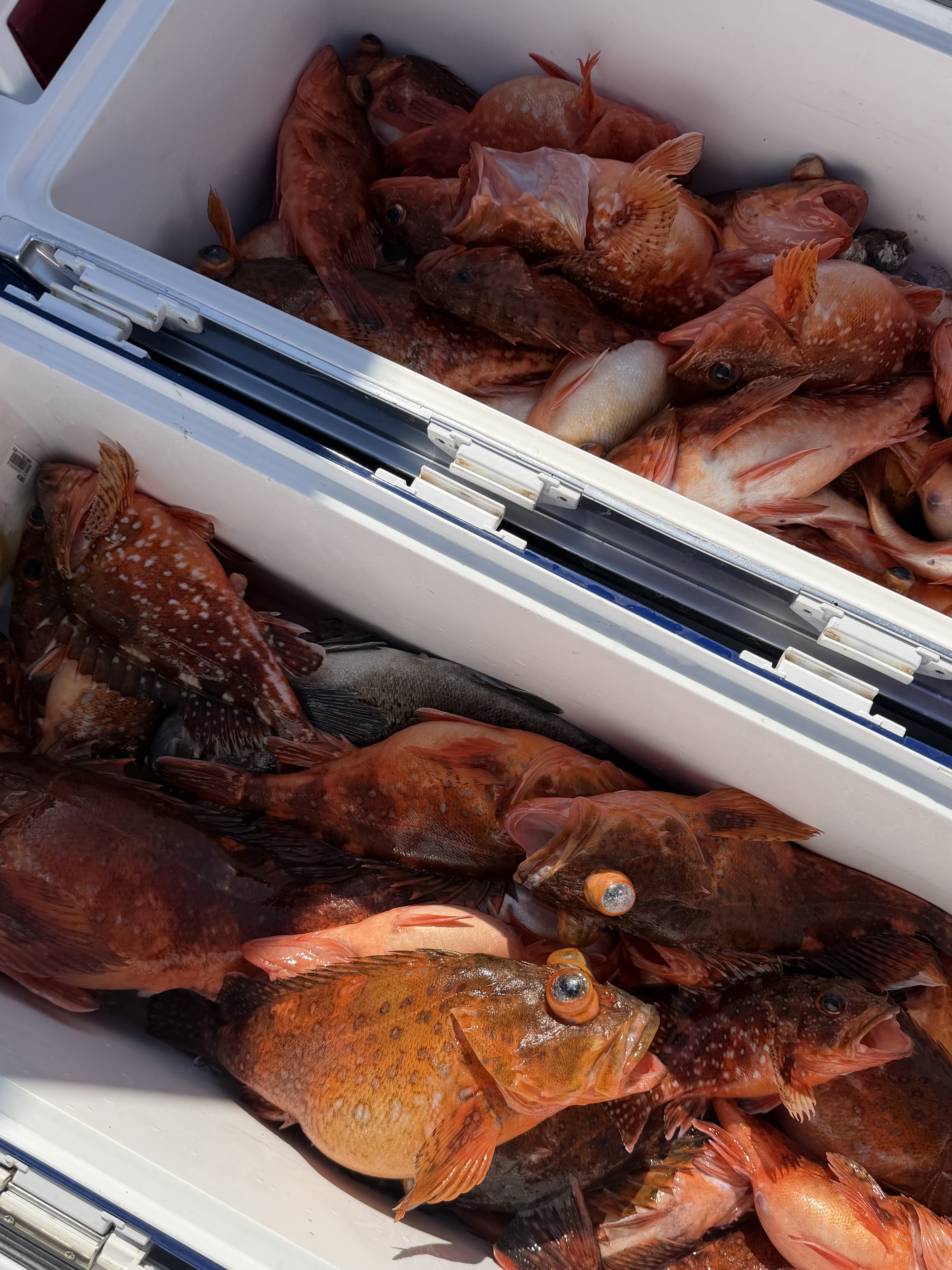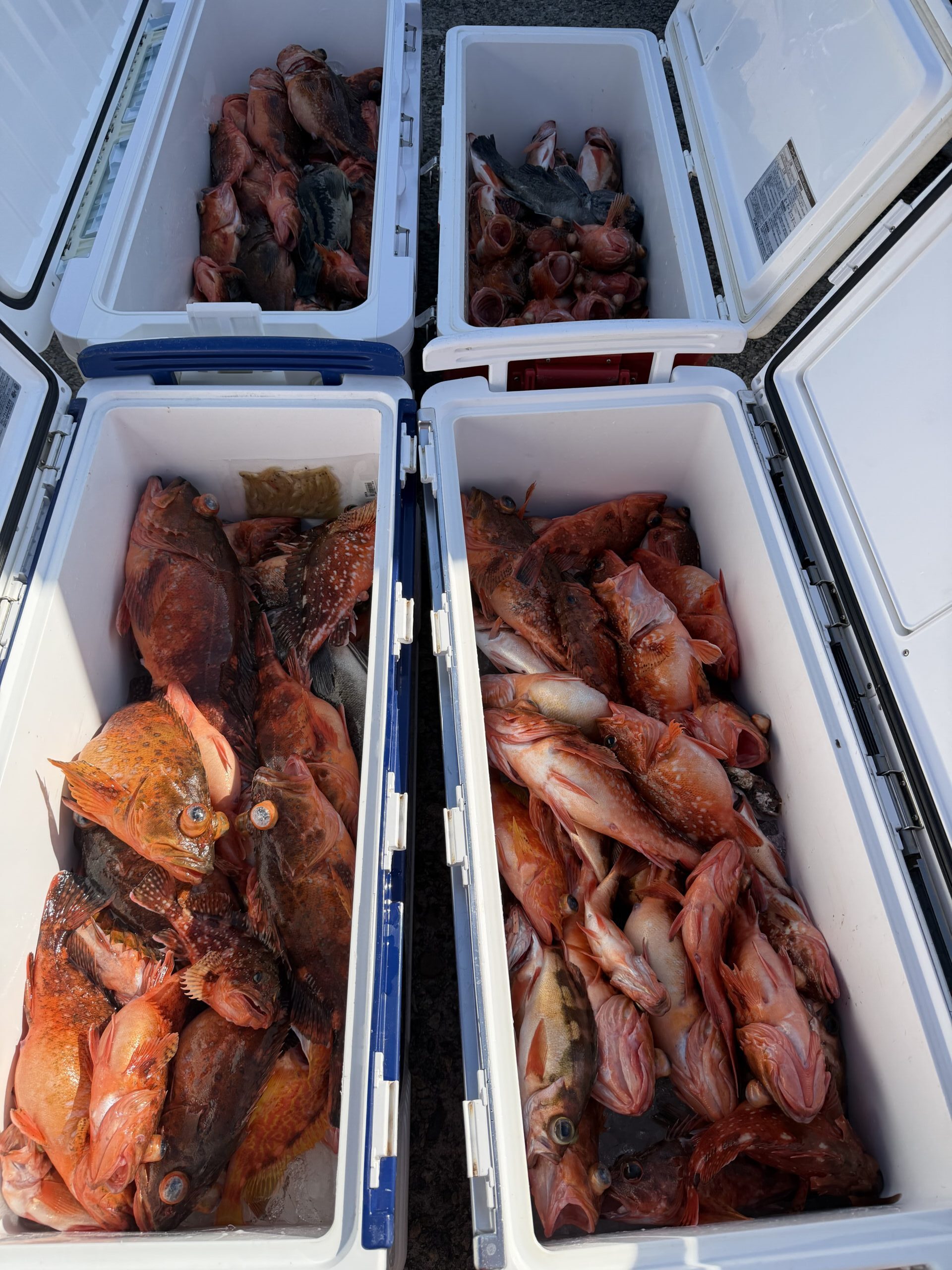 ガシラ 130匹 オキメバル 40匹 クロソイ 3匹 オニカサゴ、シマソイ ガシラ&オキメバル釣りです。昨日より一段と速い激流の上り潮。しかも下潮が速くかなりの高難度。沖へ灘へ西へ東へとポイント移動をしながら頑張りました。幸いにお客様が精鋭揃いでコツコツと数を伸ばせました。感謝。今日の状況では花丸でした。 |